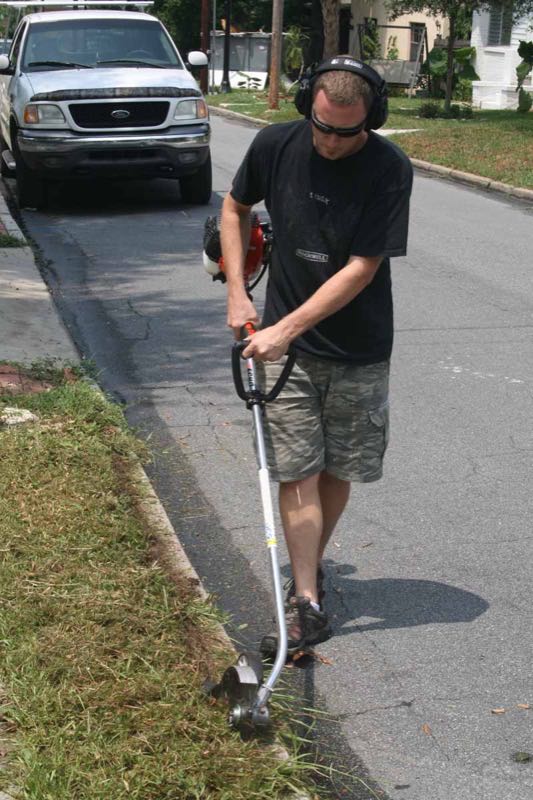 We filled the tank half full with the recommended 50:1 fuel (we mixed this with premium gas, though ECHO only recommends 89 octane). Next, we primed the bulb, disengaged the kill switch, choked it ,and pulled the starter handle. It took only a few pulls to start the engine, and then we adjusted the choke once it was running. The PE-280 didn’t require much time to cycle the fuel through its system and get up to speed. We went immediately to work on the strip of grass that borders the road in front of one of our neighborhood homes.