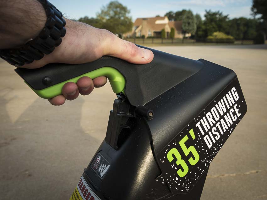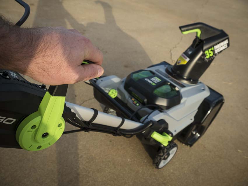 The directional adjustment is complemented by an easy squeeze grip height adjustment. Both features may seem insignificant,ย but if youโve ever owned a single or two-stage with endless cranks adjustments youโll find the EGO SNT2103ย chuteย controlsย quite refreshing.