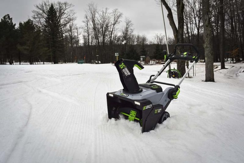 While we did see twenty-eight foot of throw, we never had the right snow to see the thirty-five-foot claim. I think, given my use of it, the EGO 21 in snow blower would do it with the right kind of snow.