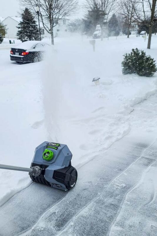 The convenience of this highly portable snow-clearing power usually comes with a price, which is how much area you can clear on a charge. EGO claims that the SSA1200 will clear 4 inches of snow from a 4-car driveway using a 4.0Ah battery.