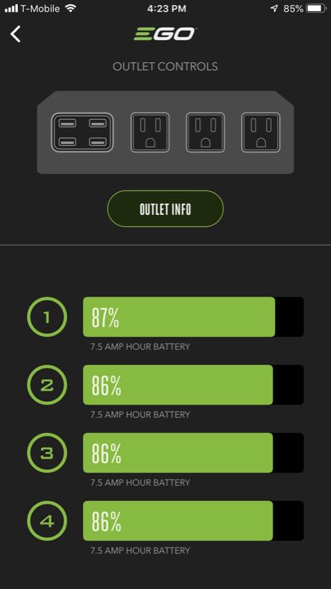 I say โ€œcurrentlyโ€ intentionally. One of the beautiful things about this kind of inverter is that the electronics and Bluetooth/WiFi connections permit firmware updates. If EGO finds they can better optimize the output, an update can be made available to download.