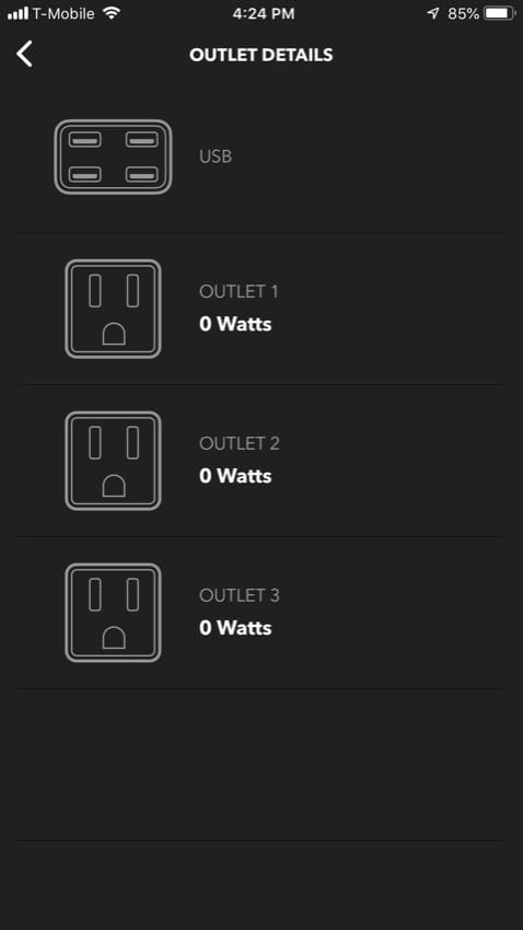 • Turn outlets on/off (full bank of USB and individual outlets)