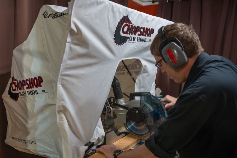 The Fastcap Miter Saw Dust Hood is one of the products that—as soon as you see it—you realize, “I need that!” My studio is in the living room of my house. Therefore, I’m constantly battling to contain sawdust. No other tool I own creates more sawdust than my miter saw. The Fastcap Miter Saw Sawdust Hood surrounds your miter saw with a tent to contain the dust.