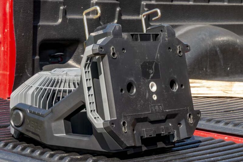 The same benefits of higher performance, longer runtimes, and longer motor life apply to fans, too. On high, Flexโs 8 1/2-inch blades push air up to 19 MPH and 1100 CFM. Weโve seen higher CFM numbers from larger diameter fans, but that 19 MPH airspeed caught our attention. With it, youโre able to move air further than most fans and direct it with a 13-position 180ยฐ rotating head.