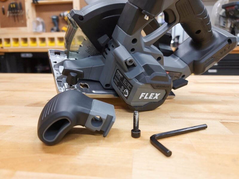 The first thing I noticed after pulling this saw out of the box was its size. The FX2461 measures 12.25 inches from tip to tail, and the overall profile is quite petite compared to many of the circular saws I’ve tested in the past.