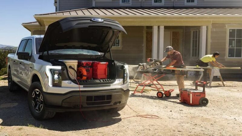 On top of that, the F-150 Lightning acts as a fully functioning generator using Pro Power Onboard. According to Ford, it can support a worksite for up to three days with the extended range battery, including the drive back and forth each day.