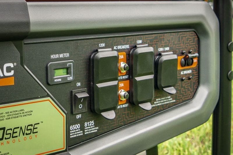 The highlight feature for this Generac 6500-watt generator is COsense. Itโs a sensor that detects carbon monoxide levels, alerting you to dangerous levels and shutting down the engine automatically.