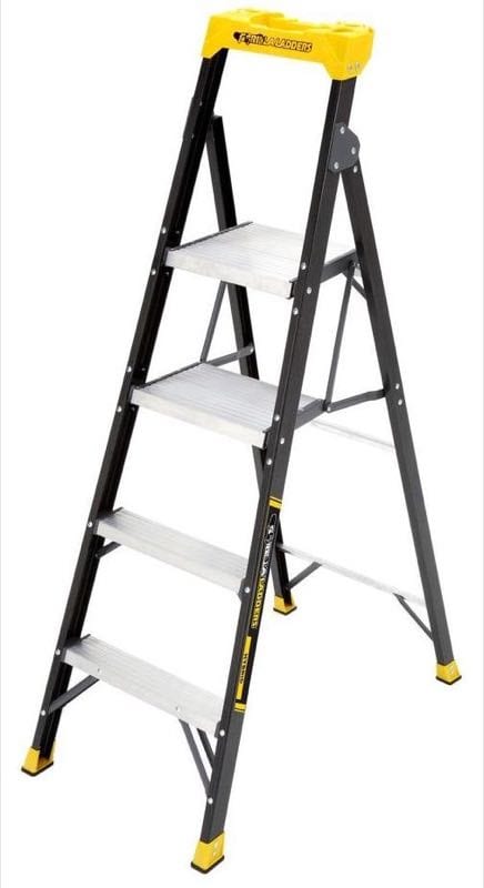 I love testing and reviewing ladders as evidenced by articles like How to choose the right ladder. Theyโre one of the most important and least recognized heroes on the jobsite. Theyโre also the most often stolen tool, but thatโs another issueโฆLadders areย getting a whole lot of attention from OSHA fall protection efforts and other regulatory bodies due to how misused and misapplied they are. Get a good ladder, however, and your work can be much easierโnot to mention safer. The newly designed Gorilla GLF-5X hybrid ladder is a goodย indoor and outdoor solution that works just as well in the home as it does on the jobsite. Itโs dubbed aย 2-in-1 hybrid ladder because it gives you theย comfortable reach of a podium-styleย ladder but addsย the ease of use and lightweight natureย of a step stool. It hasย a pair ofย oversized platform top steps and a yellowย top cap that has slots for a myriad ofย tools and accessories. We were able to store tools like aย Klein adjustable length screwdriver in the top as well as a DeWaltย 12V cordless drill. Gorilla makes this ladder in aluminum, but we opted to test out theย non-conductive fiberglass model. This is alsoย an ANSI type 1 ladder offeringย a 250 lb. load capacity.