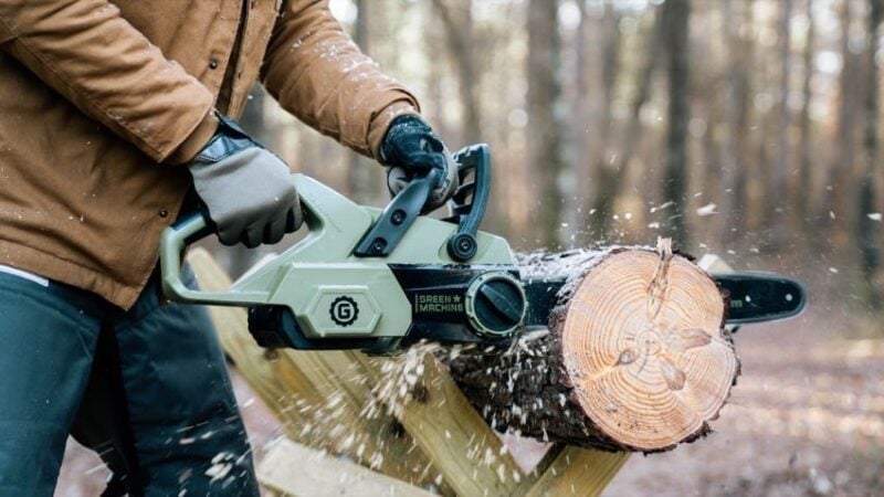 Green Machine claims that this 62V chainsaw will give you the same power as a gas-powered machine. It has an adjustable chain tension dial and gets up to 45 minutes of runtime on a full charge. Like many quality chainsaws, it has an Oregon bar and chain that is perfect for small trees or large branches.