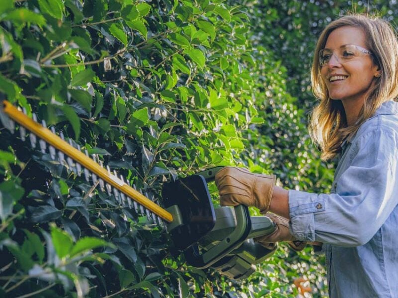 Featuring a 1-inch cut capacity and a dual-action 25-inch cutting blade, the 62V 25-inch cordless hedge trimmer is the next piece of battery-powered Green Machine lawn equipment. It uses a brushless motor and a 62V 2.5 Ah battery, giving it up to 170 minutes of runtime.