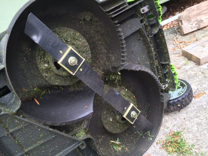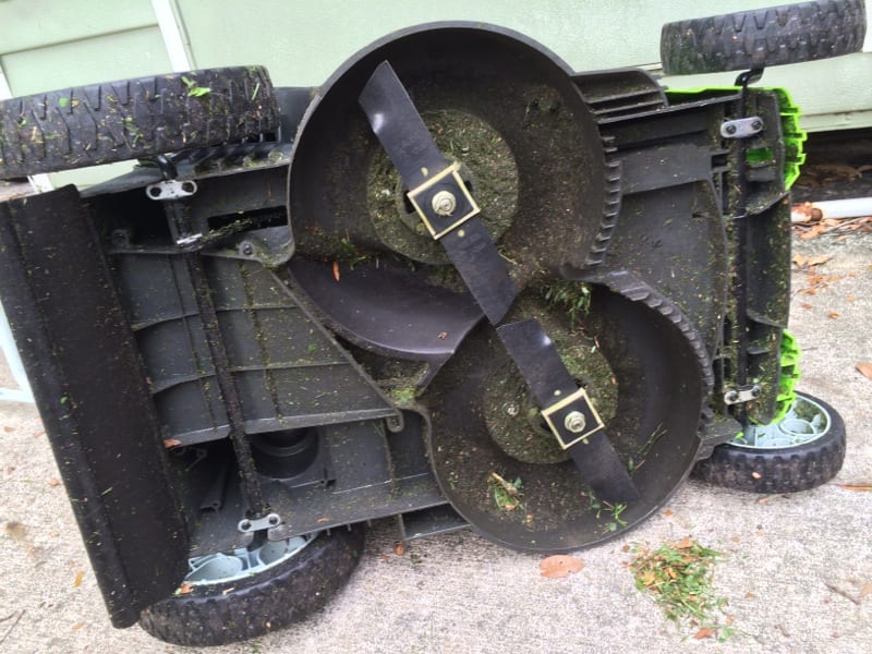 I also mowed a lawn that was in desperate need of a trim, having been left uncut for over three weeks in the Florida Fall. It was also damp since I was cutting in the morning to avoid the heat. If you understand anything about the combination of long grass and damp grass then you can fully appreciate it when I say that the mower never once bogged down on me. The dual 10-inch blades seem to work really well together, and I think that’s the reason the mulching process of the blade seemed to keep up—even though I was cutting grass that was entirely too tall.