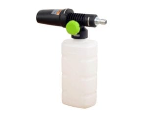 Covering Greenworks’ entire range of pressure washer power levels, the high-pressure soap applicator is a great addition. Mixing at a 10:1 ratio, it’s great for applying foaming detergents on vehicles, siding, concrete, and anywhere you want to have some chemical assistance. Thanks to its all-in-one design, the canister is much easier to clean out than the detergent tank on the pressure washer.