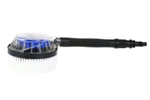 It uses the water pressure to spin the brush and do the hard work for you. Simply use the soap applicator to get a layer of grime-eating foam, switch to the rotary brush for cleaning, and then rinse it all away.