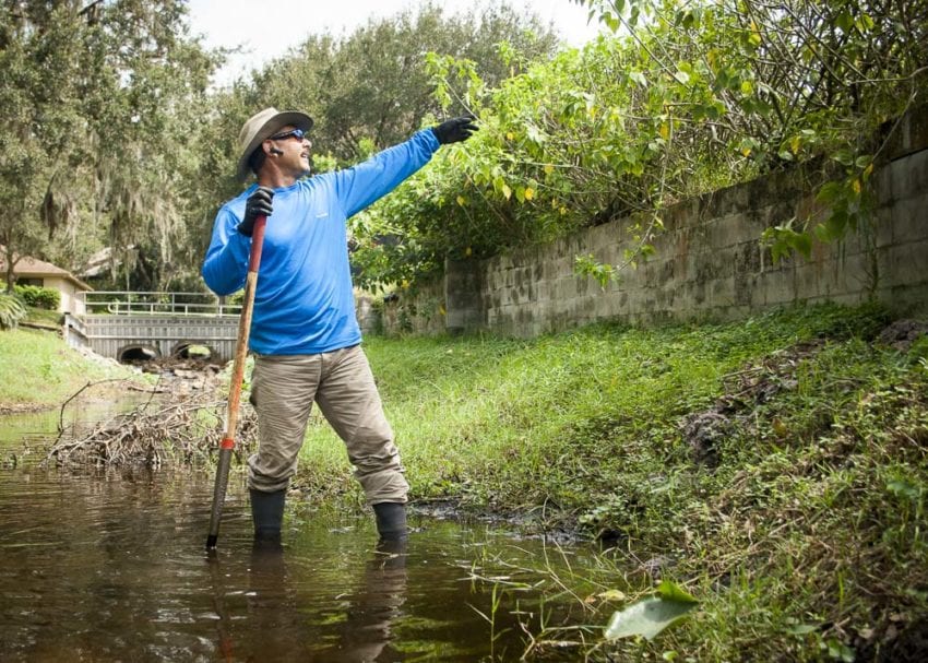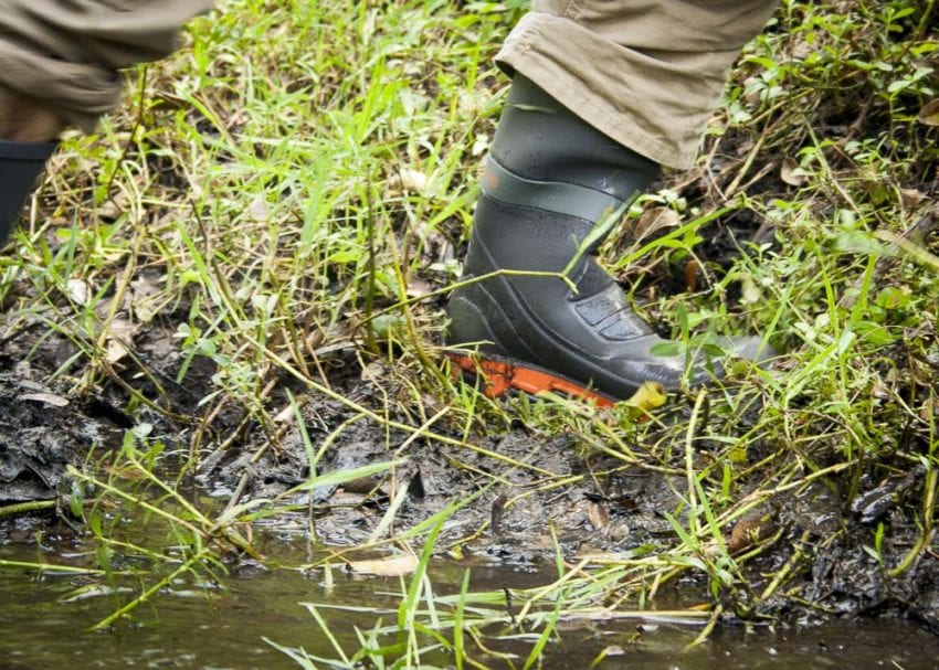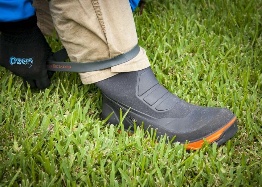 There was an abundance of soil for the job sitting just below its retaining wall, so I jumped into the creek and dug the soil and Myakka from the embankment. I had secure footing on the slippery, off-camber embankment while the silicone bands held my clothing out of harmโs way. When I finished, my feet were completely dry. If only every tool or piece of apparel worked as effectively theย Grundens Deck-Boss Boot!