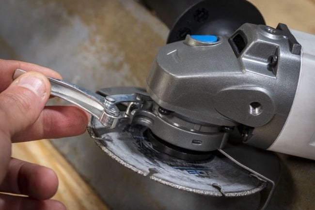 Thereโs no need for a wrench or screwdriver to adjust the guard position. Just loosen the clamp and rotate it to the best position that keeps the sparks from coming at you.