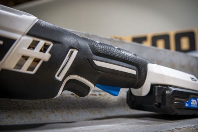 Rather than going with a paddle switch, Hart opts for a trigger system. The safety is directly behind the trigger, making it easy to operate when you grasp it. On the other hand, itโs nearly impossible to accidentally engage while itโs banging around inside your toolbox.