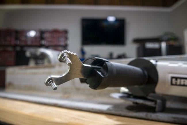 Like nearly every angle grinder, you need a spanner wrench to change the wheel out. Fortunately, Hartโs lives in the auxiliary handle, making it much less like to go missing or be left behind.