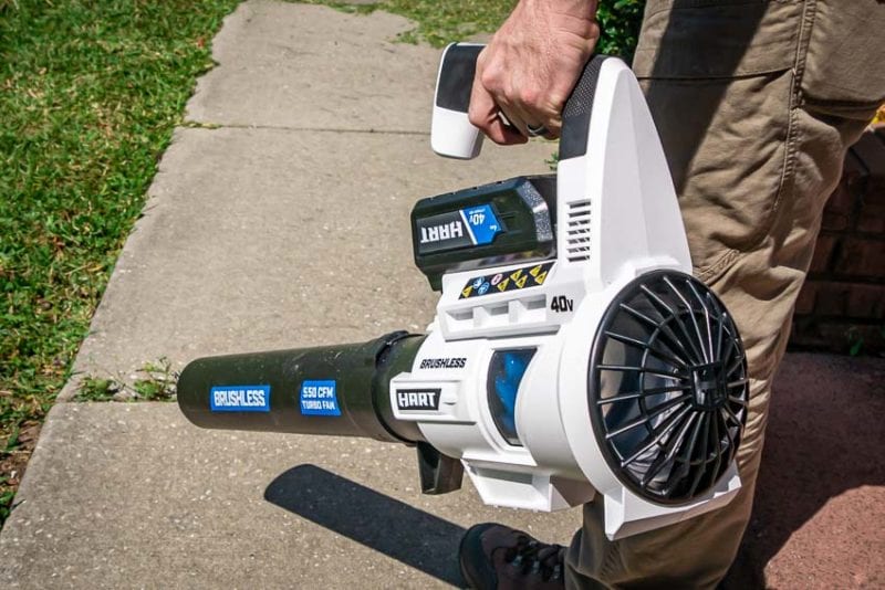 Hart’s brushless 550 CFM Turbo Fan Blower supplements their 40V line well. Its brushless performance offers better power and runtime than brushed models and it delivers the power of a gas-powered homeowner handheld blower in Power Boost mode. It’s certainly possible to get more power, but you’ll need to boost your budget to get a meaningful upgrade.