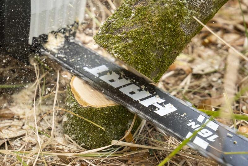 The brushless motor keeps the chainspeed up well and has some decent muscle behind it. We took down several trees up to 6 inches with ease. Once each tree was down, we were able to quickly remove the limbs and then chunk it into usable firewood.