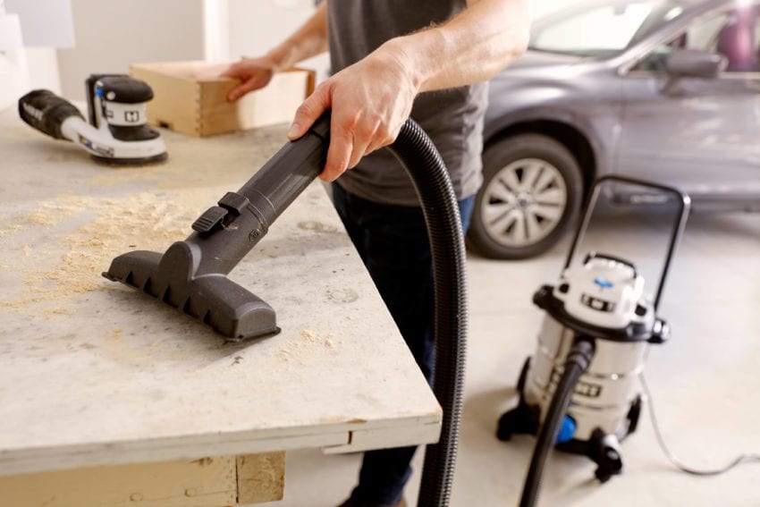 Large rear wheels and a push handle let you guide this Hart vacuum around the shop effortlessly. It comes with an array of accessories that all store away onboard, along with the hoses. The hose and accessories also feature locking mechanisms so that nothing comes disconnected during use. We lose interest ina. vac if the accessories canโ€™t store onboardโ€”we loved that Hart saw to that with this model.
