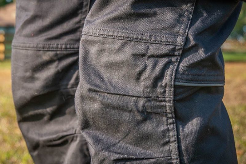 Hidden on the inside, pockets at the knees can hold knee pads.