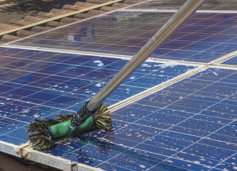 It doesnโt take a lot of fancy equipment or expensive cleaning solutions to keep solar panels clean. Typically, plain water is enough to clean your solar panels, and you should avoid harsh, abrasive chemicals and tools with stiff bristles.