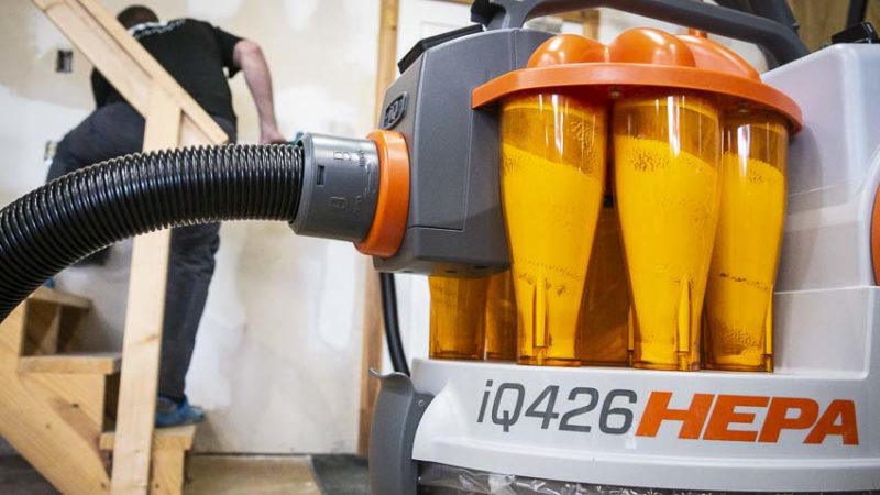 Dust extraction makes for a key component to nearly any commercial construction job. Recently, we witnessed the full renovation and remodeling of a downtown brewery into a modern-day food hall. Nearly the entire space required polishing of the concrete floors using a commercial floor grinder. That kind of grinding requires plenty of suction—not to mention capacity. At nearly the same time, we traveled to World of Concrete in Las Vegas. There, we witnessed the iQ Power Tools iQ426HEPA Cyclonic Dust Extractor pick up 50 pounds of drywall dust in about 30 seconds.