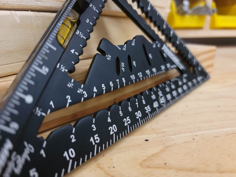 One of the key highlights of this rafter square is the Smart Mark cutouts. These innovative cutouts are instrumental for notching layout markings and scribing lines on your material. What sets these notches apart from what weโve seen on other rafter squares is their size. The Smart Mark cutouts offer plenty of room for a moderately sharp carpenterโs pencil, and the larger notches make it easy to accurately scribe lines on your material.