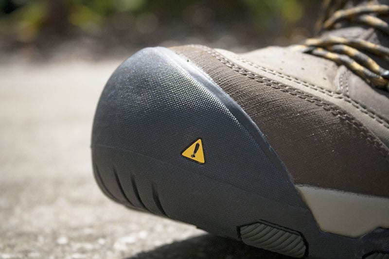 Keen uses asymmetric safety toes โ theyโre left and right specific for a better fit and they also use an extra-wide toe box. You get an oil and slip resistant non-marring outsole. Theย bond to the midsole is cement (glue) with a polyurethane midsole. When it comes to construction strength, thatโs the weakest bond with direct attachment and welting being stronger. The benefit of the cement bond is that itโs more flexible and offers your feet a better feel of the surface youโre on.