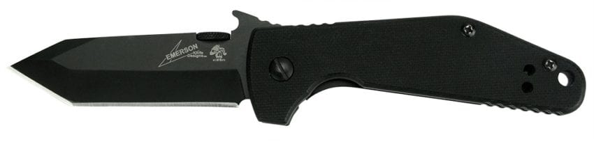 So what is the “Wave” feature? The wave was invented by Emerson and patented in 1999, which gave the ability to deploy the blade by simply pulling the knife out of the pocket. This gave the user speed in one-handed knife blade deployment and use. It quickly gained popularity with military and law enforcement. This can translate into a perfect use for emergency situations or just to impress your friends. The blade design of the new Emerson is like a steep tanto, as opposed to the more common “snub” design, or the smooth top of the Kershaw Kuro 1835TBLKST.