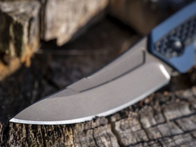 With a gunmetal gray color, the blade reaches out 3โณ and features a sweeping trailing point style. It has outstanding slicing characteristics and its slight downturn near the tip gives it a fantastic piercing tip as well. The downside is that its tip is more vulnerable to breaking if you drop it on a hard surface.