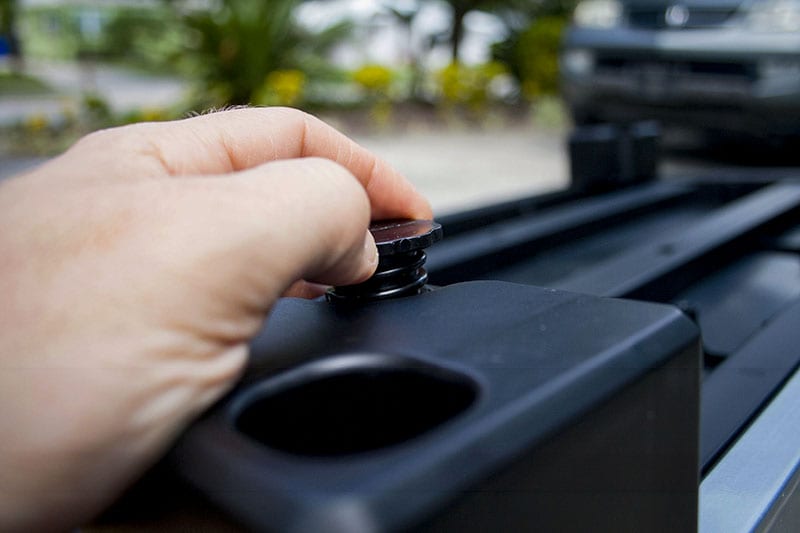 The feet are attached to the base using the cylindrical pieces you see in the picture above. Then two of the feet situated diagonally โ for example, the front left foot and the back right foot โ receive a plastic adjustment screw that helps level the cabinet. If you find that the doors donโt close well once you finish assembly, itโs likely that the cabinet is out of square and these adjustment feet can remedy that.