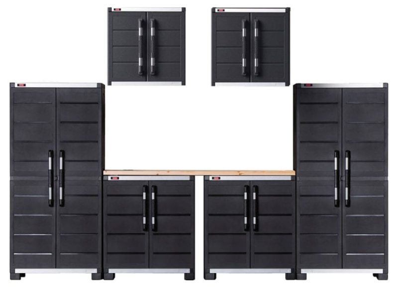 If youโre looking for durable, solid, and easily assembled workshop or garage storage cabinets that can turn your disorganized area into a place that you actually enjoy using, a place that you can tinker, create, and just relax while using some tools, then the Keter XL 6-Piece Garage Set is your solution. Ranging from around $700 to $900 depending on where you buy, you may be apprehensive, but this six-piece set provides expansive storage, lockable tall cabinets, a base for a workbench, and the quality and durability to last for many years. The set is worth the money and my garage workshop is remarkably better because of it. See the set for yourself on Keterโs website by clicking here.