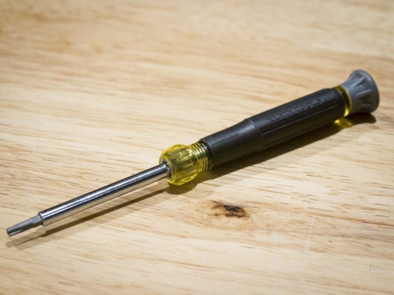 The Klein 4-In-1 Electronics Screwdriver includes four of the more common Torx bit sizes โ T7, T8, T10, and T15. Two double-sided bits fit into the chrome-plated steel shank, which fits snugly into the handle.