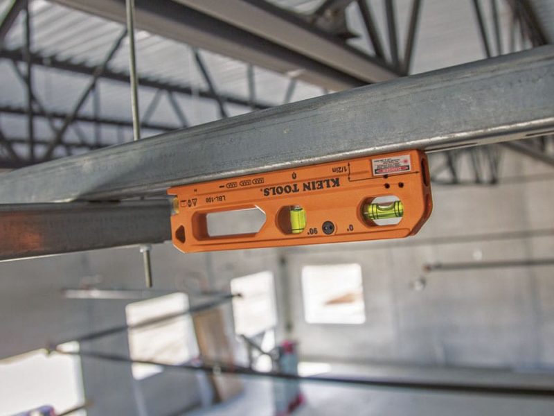 The Klein LBL100 Laser Line Bubble Level projects a horizontal laser line and spot parallel to the base of the level up to 75 feet. Combined with a handful of other features, this level looks like an effective tool for a variety of situations. Having already reviewed the Klein 24-inch bubble level, we have high expectations for this diminutive leveling tool.