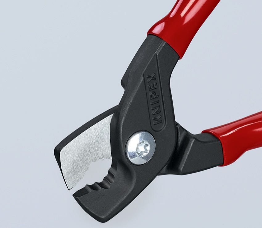 The Knipex StepCut Cable Shears feature induction-hardened cutting edges with precision-ground blades. Theyโve been milled to a wavy form on the front and ground flat on the back.