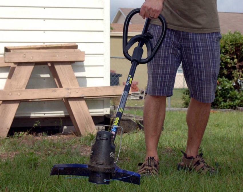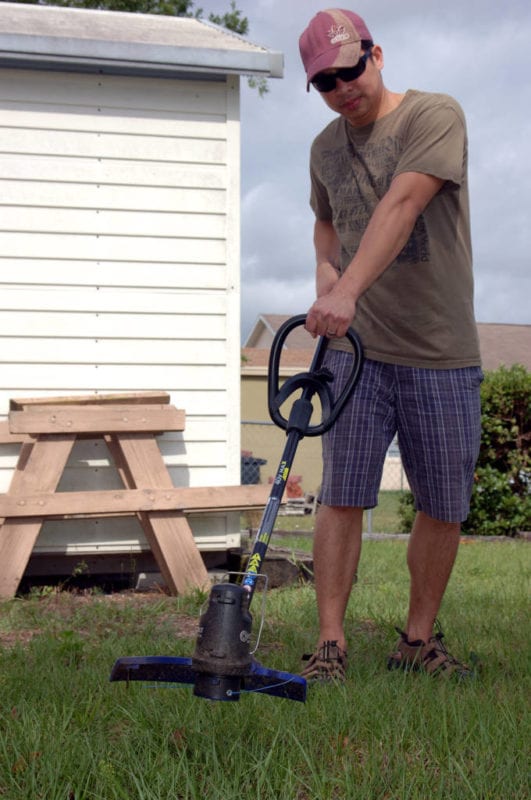 There was some confusion when it came to testing the trimmer’s ability as an edger. Although the manual suggested I could just pop the edger guide down, flip it over, and edge, I found the reality of that to be tricky. The edger guide is about 1″ from the string, but at almost the same length as what the line is cut to. The guard blocked my view so I was unable to see where I was actually edging. This resulted in anything but a nice clean edge along the driveway. I tried using it in several different positions and even got Kenny Koehler to give it a shot, but its use in this function was just awkward.