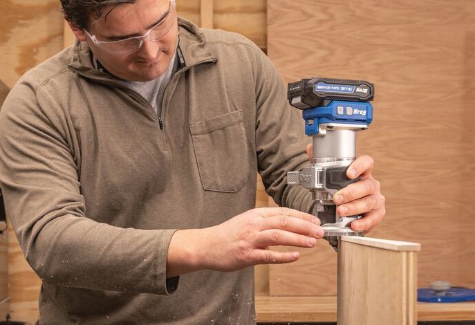 Another woodworking-specific tool in Kregโs 20V lineup is this 1/4-inch trim router. Like the rest of this cordless lineup, it features a brushless motor, this time driving speeds up to 30,000 RPM. There are 6 speed settings to choose from (10,000 RPM โ 30,000 RPM) to set your removal rate to the application at hand.