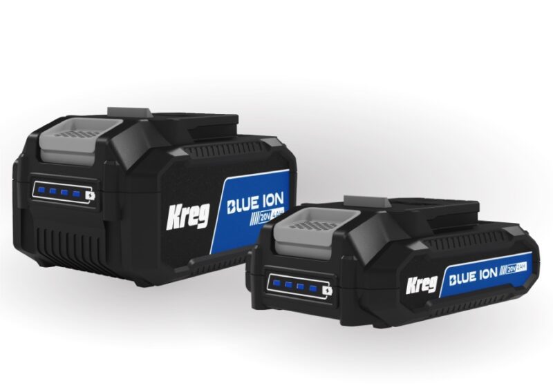 For Kregโs first stab at power tools, it all starts with the battery. These tools are powered by the new Kreg Blue Ion 20V batteries. Theyโre outfitted with optimized electronics that communicate with the toolsโ brushless motors for enhanced runtimes and high performance.
