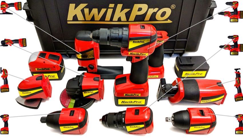 Instead of robotic lions that assemble together to form a mega-robot that defends the universe from intergalactic tyranny, the KwikPro components attach together to form a power drill, or an angle grinder, or an impact wrench, or any number of tools that youโd expect to find in a toolbag.