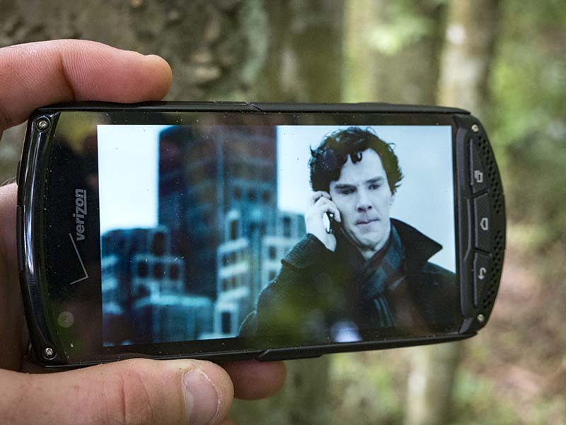You could have gone to a number of other sites to get an idea of what to expect from the Kyocera Brigadier, but you want to know if itโs a solid fit for use on the jobsite โ something the tech geeks (I say that lovingly, I need my tech geeks every day!) sitting behind a desk all day canโt begin to understand. It starts with the sapphire glass screen. This is lab-produced sapphire like what is found in the Jord Ebony and Copper Watch we reviewed. Second only in mineral hardness to diamond, Kyoceraโs Sapphire Shield about as close to scratch-proof as you can hope to find. You can toss a screen protector on there if you really want to, but I wouldnโtย bother.