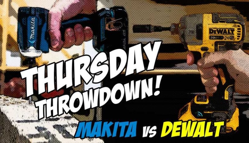 In this Makita 18V LXT Vs DeWalt 20V Max XR Impact Driver Thursday Throwdown, Makita comes away with a convincing win, 6 โ 3 with 1 tie. Two of DeWaltโs three wins are close ones and the only area Team Yellow really pulls away is in price.