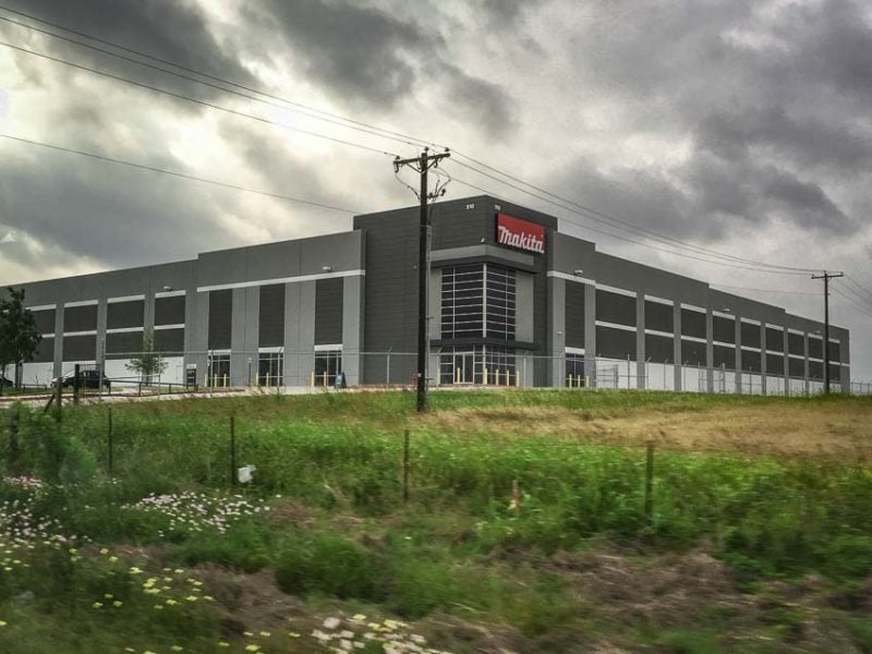 I know we said Dallas, but the new Makita distribution facility is actually located in the City of Wilmerโjust outside of Dallas, Texas. This Dallas facility is actuallyย Makitaโsย fourth U.S.-based distribution center. Other Makita properties exist in Mt. Prospect, Illinois, and Buford, Georgia, as well as Makita USAโs home office in La Mirada, California. It spans approximately 25 acres and features 220,000 square feet of space, with the potential to expand to 300,000 square feet due to additional available land.