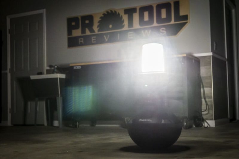 One other thing worth notingโyou can lay down the Makita wobble-style light on its side if you so desire. After all, if the light were to bounce back up all the time, it might be more difficult to fit in the back of a pickup truck or work van.