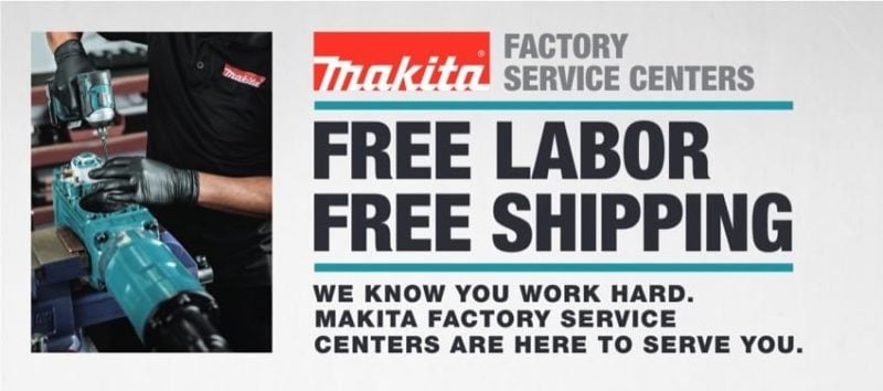 Makita knows that these are trying times for Pros in the construction and trade fields. They also know that, sometimes, when it rains, it pours. Tools can still break downโ€”even during a worldwide pandemic. Thatโ€™s why, effective immediately, Makita has initiated temporary free labor and free shipping at their factory service centers.