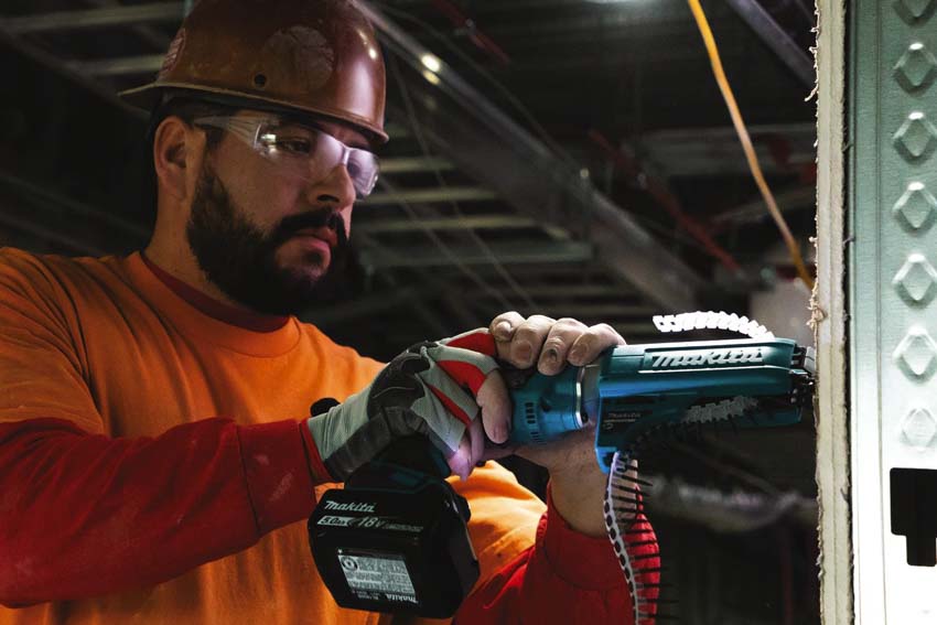 The runtime is impressive. Using a 5.0Ah battery, you can drive up to 2250 screws on one charge. Two major technologies are in play. The brushless motor is more efficient than brushed models and Makitaโs Push Drive system ensures the motor only runs when you press in to drive while still giving you the option to use a lock-on button to improve your speed.