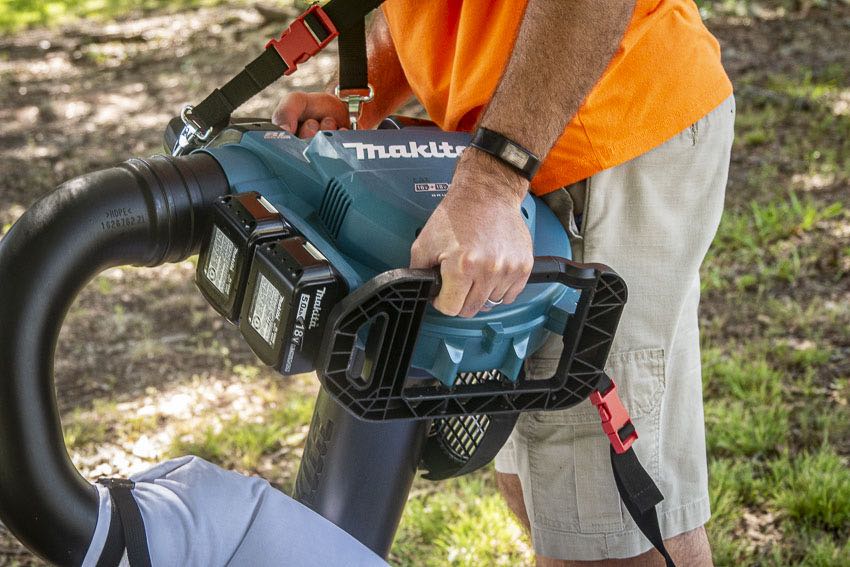 Makita includes a shoulder strap in the kit and youโ€™re going to want to use it when youโ€™re vacuuming. Itโ€™s partly to manage the weight and partly to manage the shape and balance of the tool.