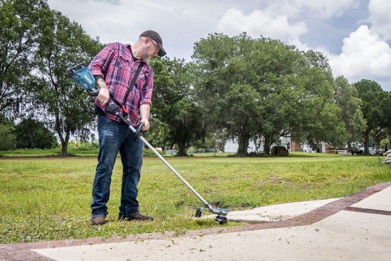 While the Low setting works great for these more delicate areas, High lets you shred through those wide-open spaces quicklyโ€ฆ and without remorse. This is another way of saying that the Makita XRU15 has some serious torque. St. Augustine grass has a way of encroaching on driveways and sidewalks pretty quickly with its thick, stalky runners. Where you might have to put in some time with a lesser trimmer to get through these stalks, the XRU15 rips right through them with torque that you can feel.
