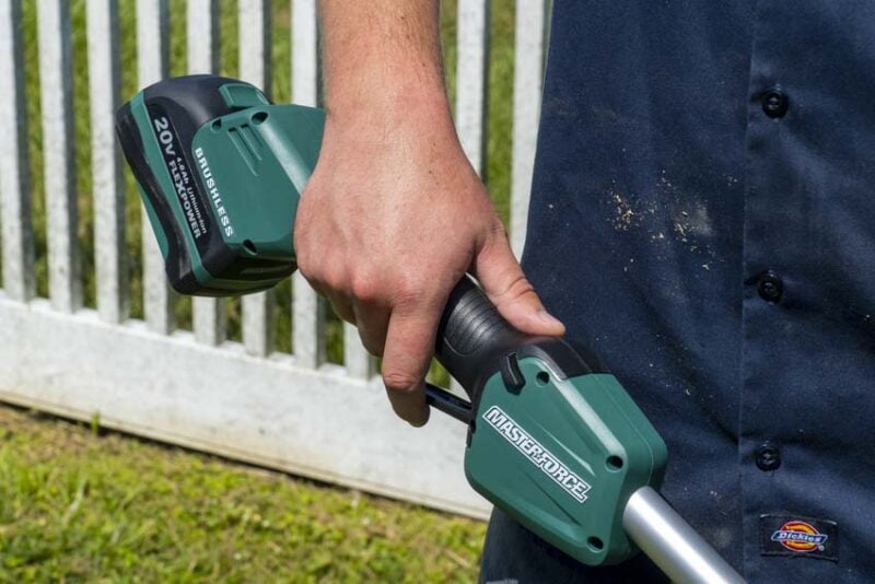 Masterforce equips this string trimmer with a brushless motor that delivers between 5,800 and 7,000 RPMs using a variable speed trigger for control. That is on the higher end as speed is concerned but itโs necessary for maintaining an effective cut with its lighter 0.080-inch line and 12-inch cutting swath.