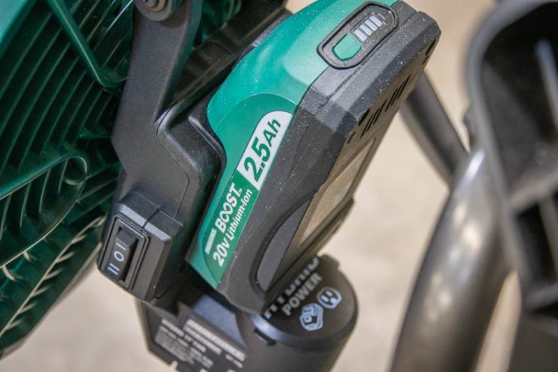 You can pick up this Masterforce fan for $59.99 and itโs backed by a 3-years warranty. Unlike most cordless tools, you donโt actually have to have a battery to use it. However, you do if you want to be free of the cord. Fortunately, you can use any Masterforce 20V FlexPower or Boost battery.